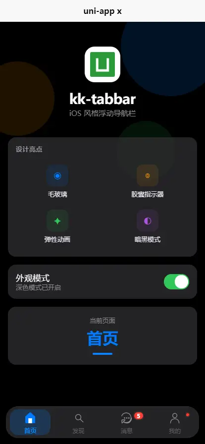 | 插件显示名称 | kk-tabbar iOS风格浮动底部导航 |