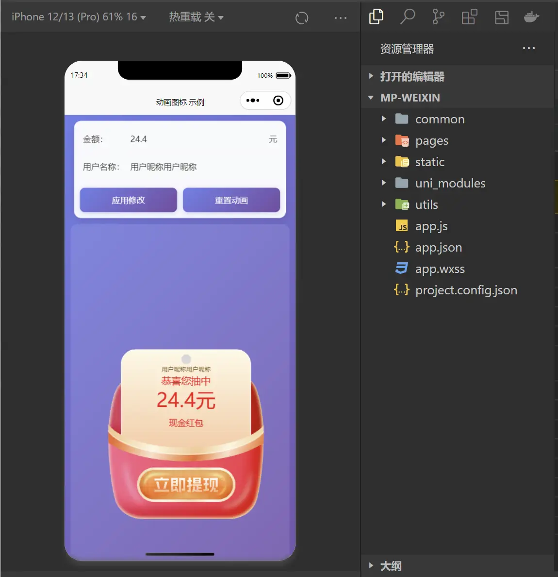 :textMap="{ '24.4元': '99.9元', '用户昵称': '张三' }"