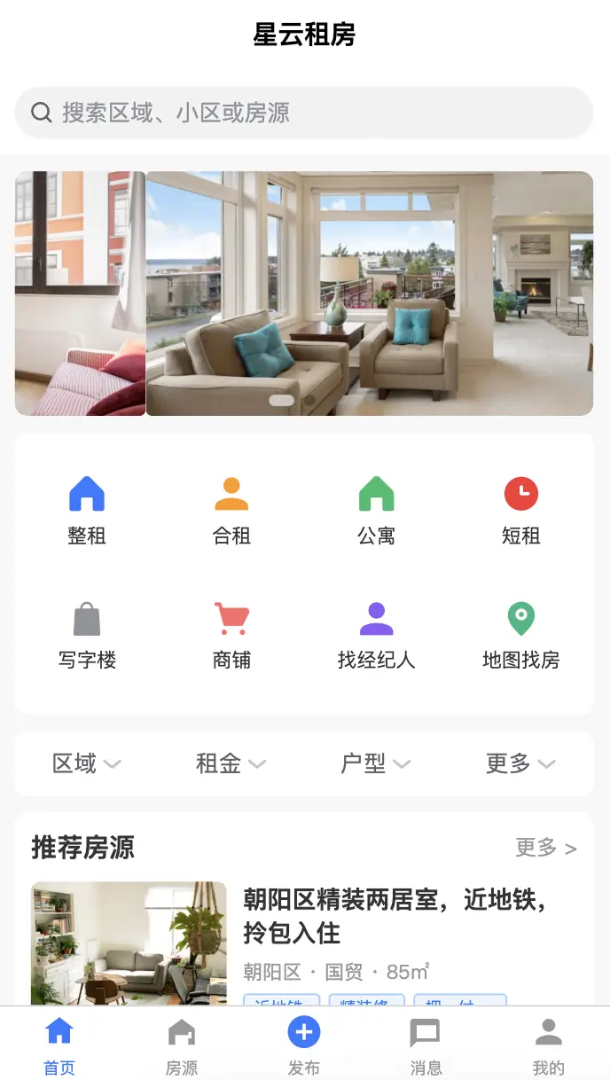 - 首页页面 - 展示推荐房源、热门小区、快速入口
