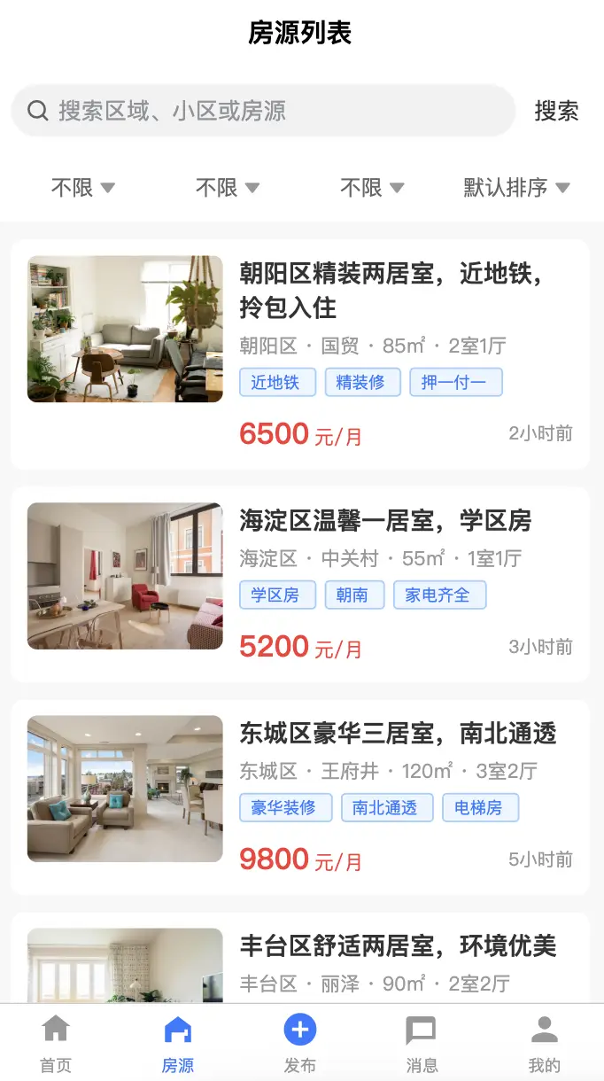 - 房源列表页 - 提供筛选、排序、搜索功能