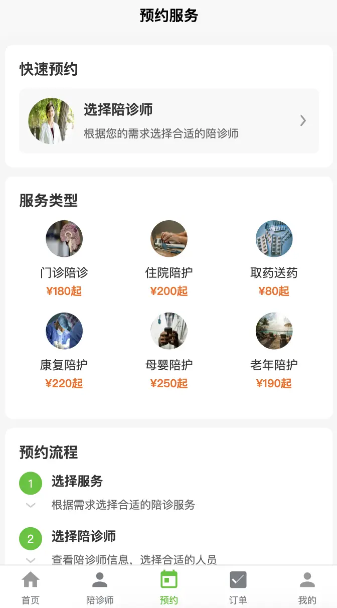 - 首页 - 服务分类、陪诊师推荐、服务流程