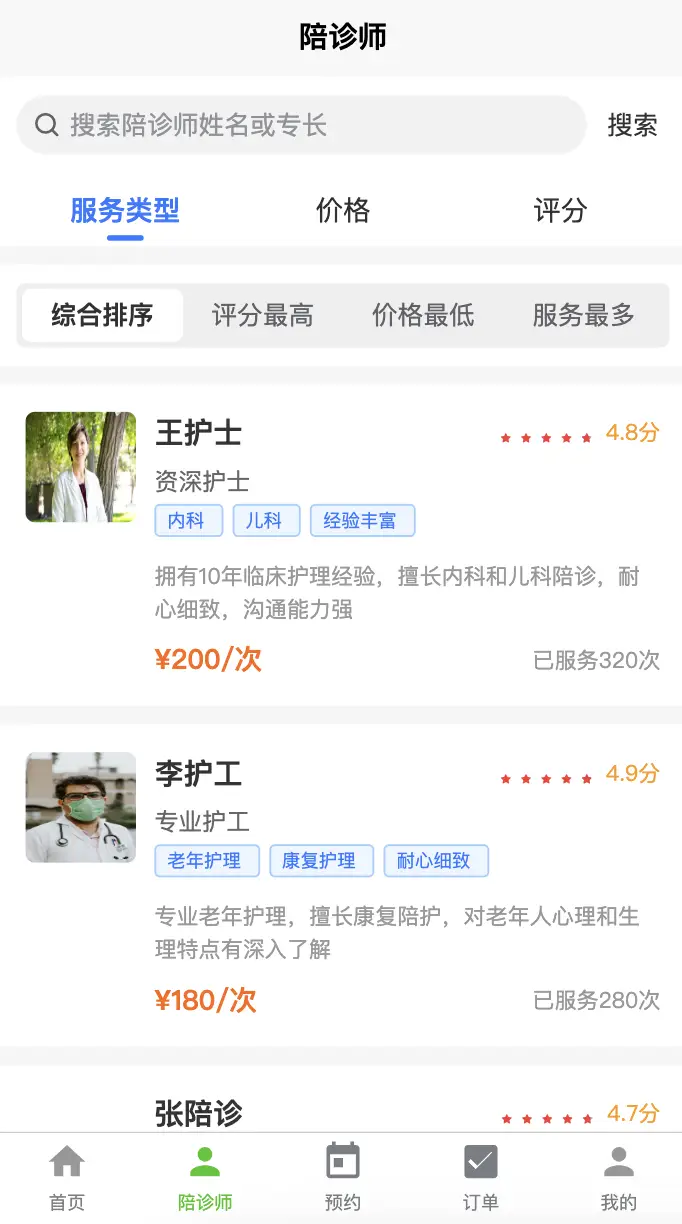 - 陪诊师列表页面 - 展示所有可用陪诊师