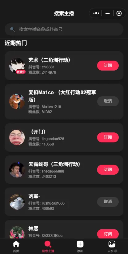 支持监控多个抖音直播间,通过小程序订阅通知通知用户直播间开播状态,支持去水印