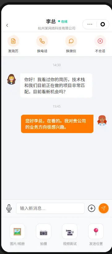 发送端 (chat.vue):仿照 sendResumeCard 方法,调用 this.$im.tim.createCustomMessage,在 payload.data 中传入你自定义的 JSON 字符串(如 { type: 'goods', id: 101, price: '99' })。