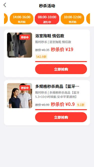 - 多活动叠加:支持秒杀、拼团、砍价、优惠券、会员折扣等多种营销活动
