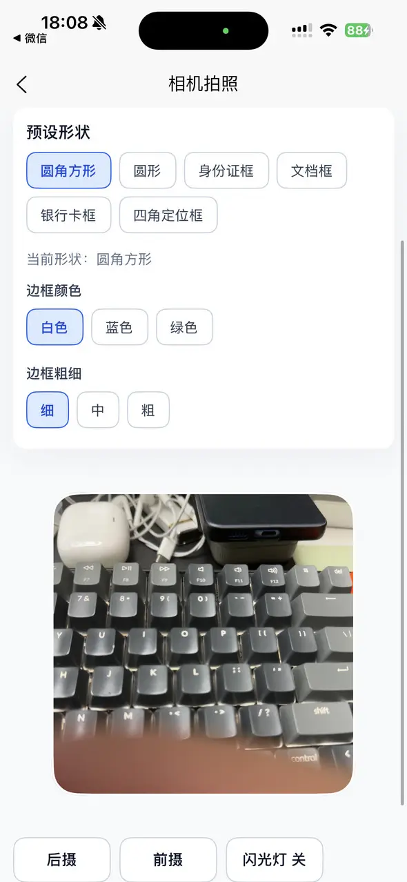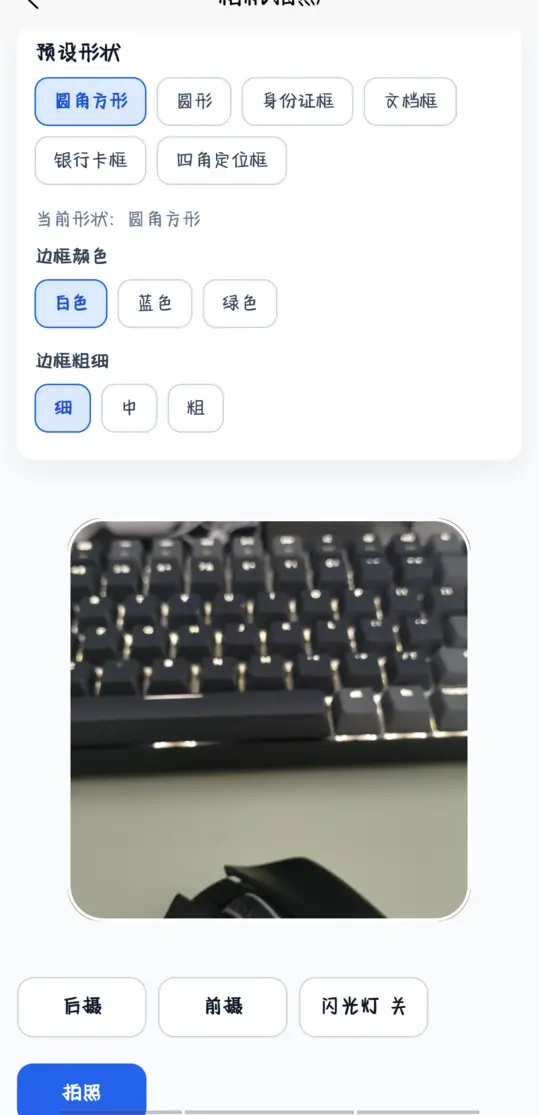 - 支持圆角方形、圆形、身份证框、文档框、银行卡框、四角定位框预设