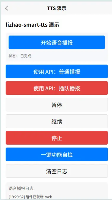 text: '你好,这是 lizhao-smart-tts 的全端播报演示。',