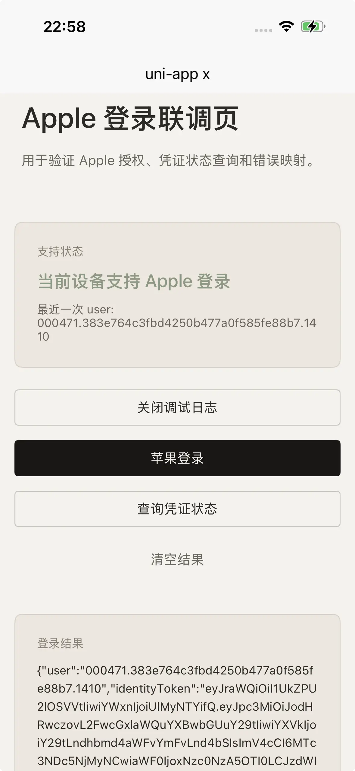 user: Apple 用户唯一标识state: Apple 返回的凭证状态值stateText: 凭证状态文本