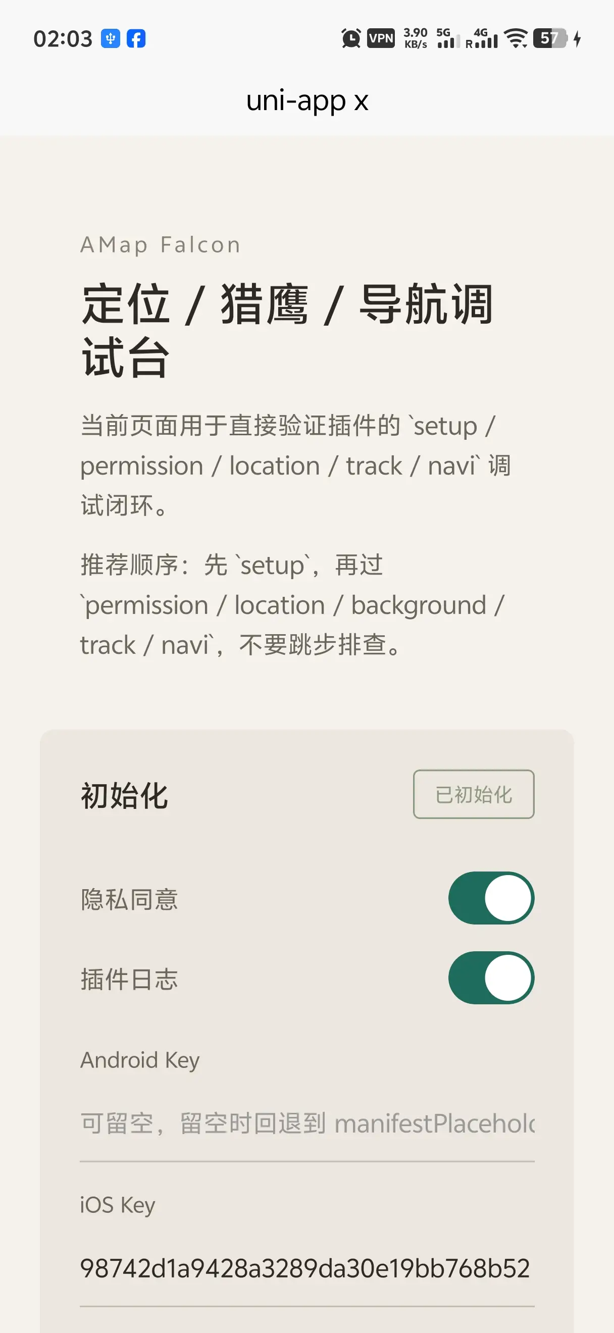 hans-amap-falcon 是一个面向 uni-app x 的 UTS 功能插件,封装了高德定位、猎鹰轨迹和原生全屏导航能力。