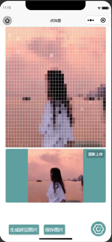拼豆图生成器实现了: ①图片上传 ②图片转化为像素点阵图 ③点阵图像素大小 ④下载保存到本地