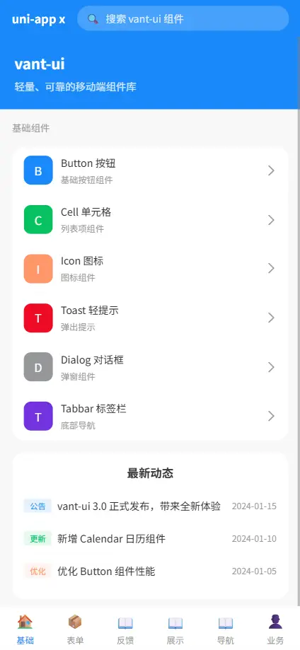 vant-ui 是专为 uni-app x 开发的移动端组件库,遵循 Vant 设计规范,提供一致的 UI 体验。组件库采用模块化设计,支持按需引入,适用于各种 uni-app 项目。