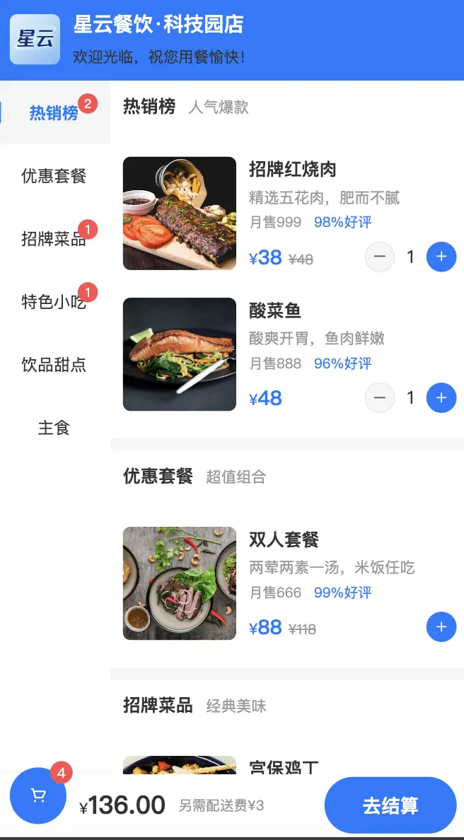 - 移动端:实现门店选择、菜品浏览、在线点餐、订单管理等功能