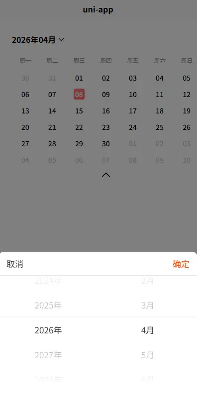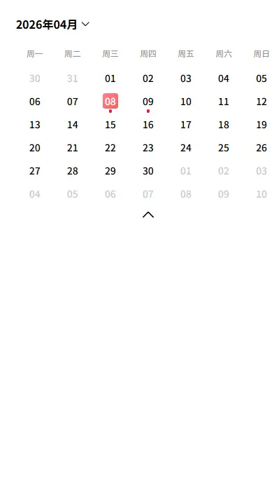 1、支持周和月的切换 2、支持打点 3、插件在初始化的时候就会调用change方法