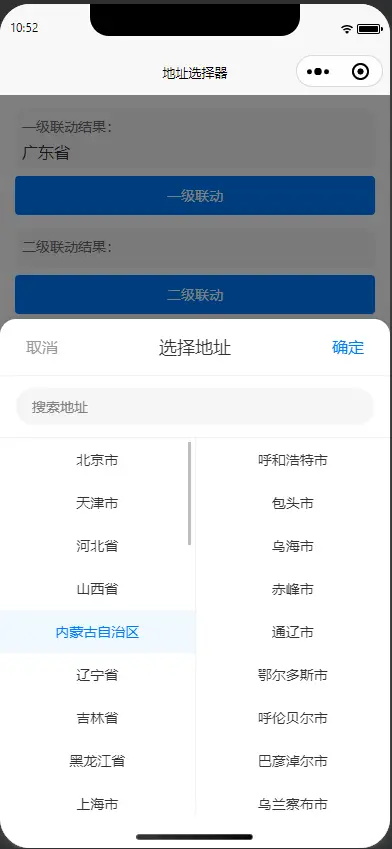 - 二级联动:搜索一级和二级数据(如省份和城市)