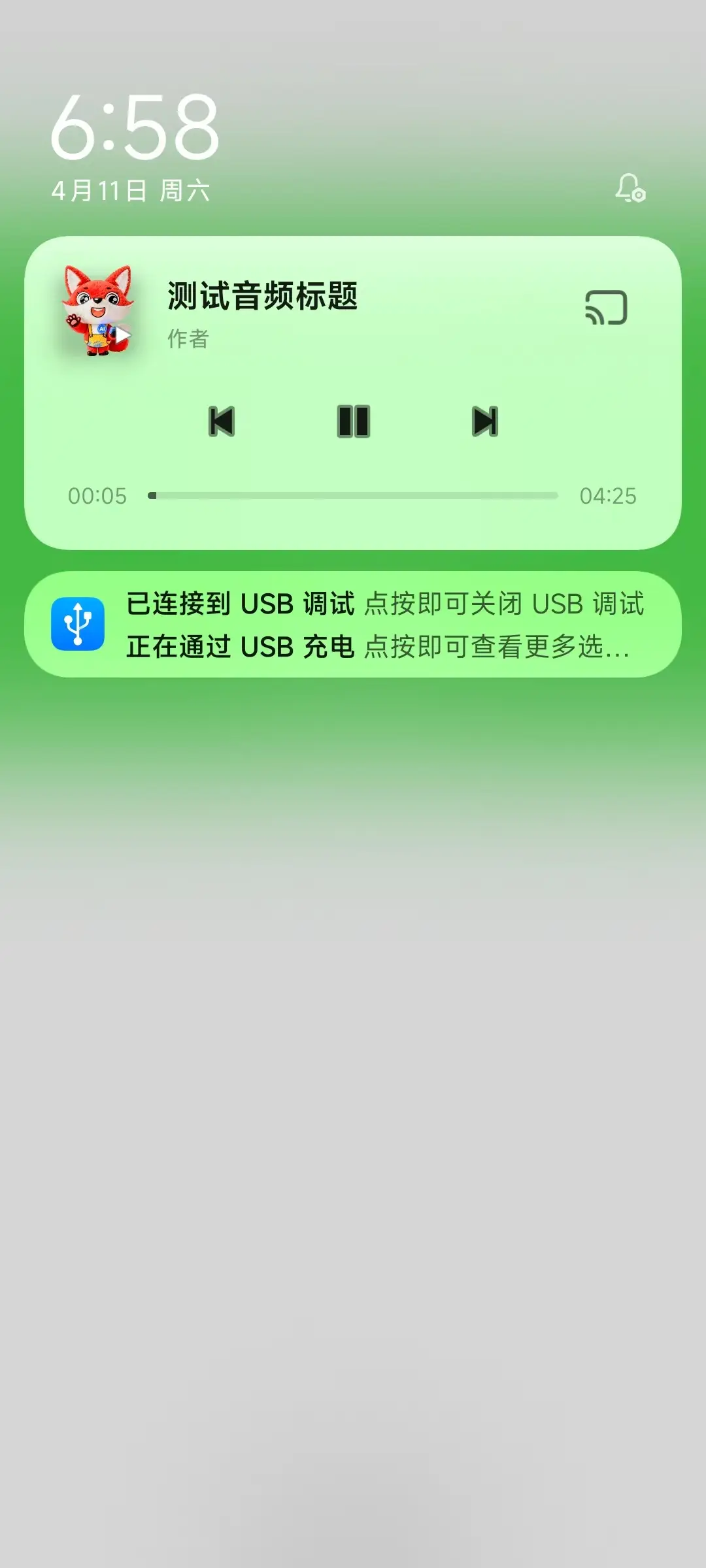 uni 官方的 uni.getBackgroundAudioManager() 在 iOS 端有完整的锁屏播放器,但在安卓端没有。本插件专为安卓端提供与官方 API 一致的接口,并实现系统级媒体通知栏播放器,支持封面、标题、进度条、上一曲/下一曲/暂停等控制。
