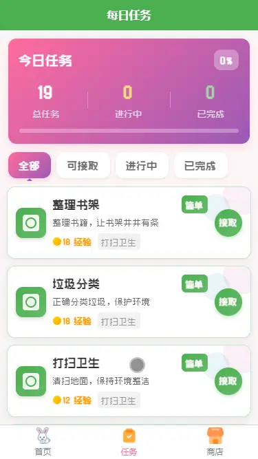 任务管理系统,鼓励积极行为,同时奖励用户经验值。