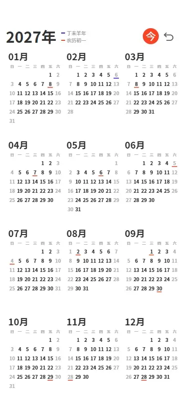 | nowYear | String|Number | - | 自定义当前年份,默认为今年 |