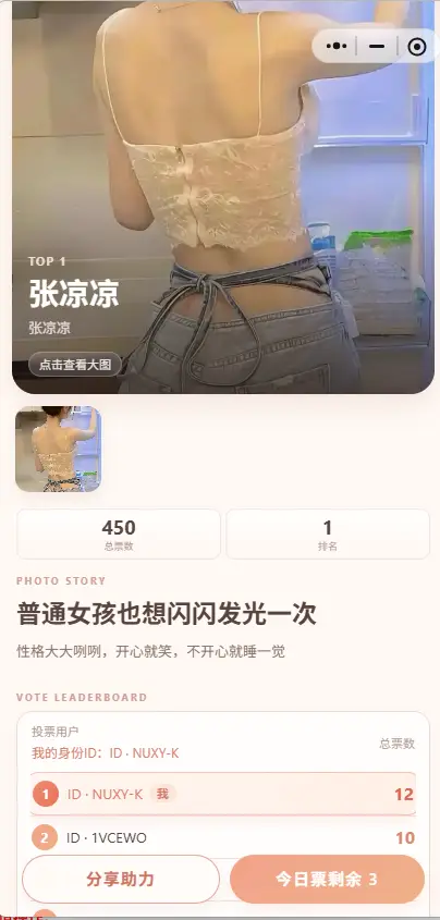 - 适合用于热门评选、冲榜活动、拉票活动等场景