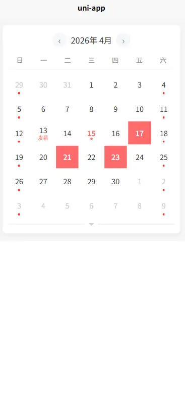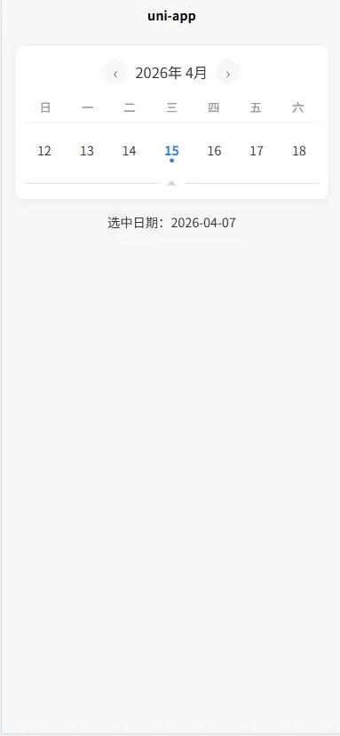 <text class="result">选中日期:{{ selectedDate }}</text>