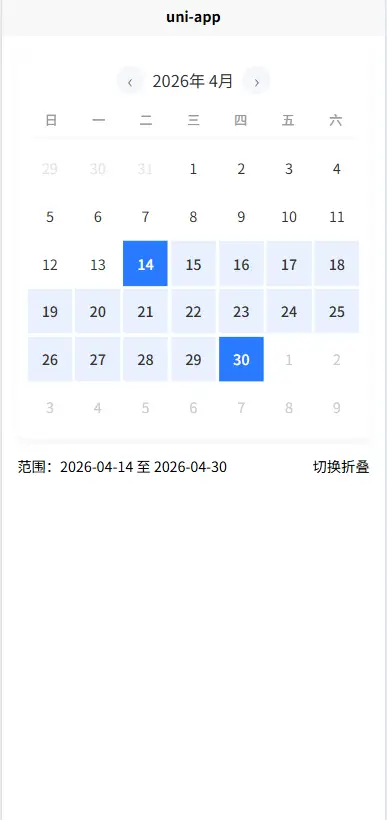 范围选择 + 折叠切换 + 限制可选日期