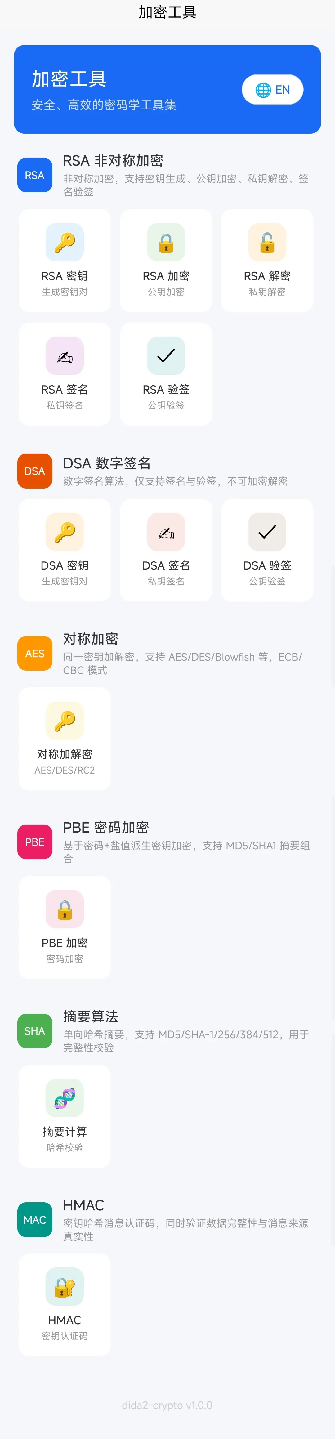 - PBE 密码加密:支持 PBEWithMD5AndDES、PBEWithSHA1AndDESede