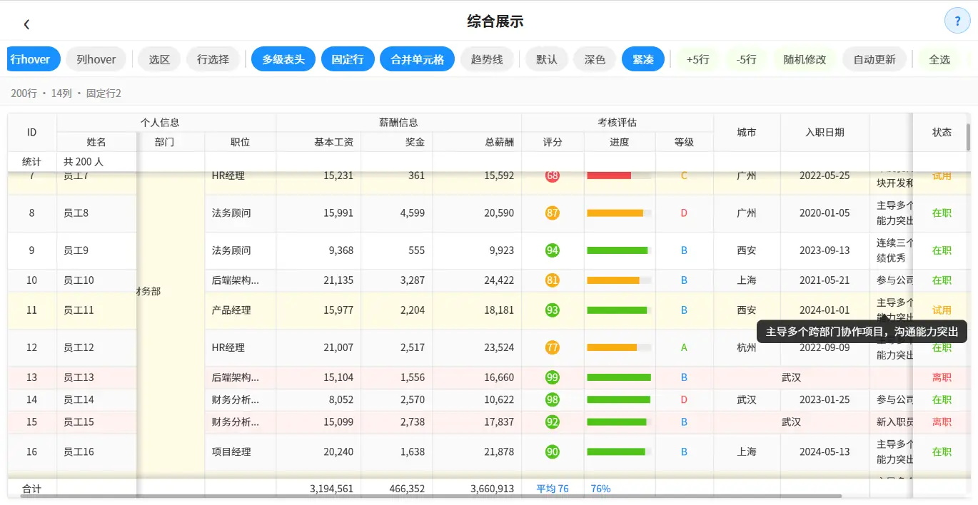 loading)与空状态(EmptyLayer) - 支持条纹行、悬停高亮、列悬停高亮