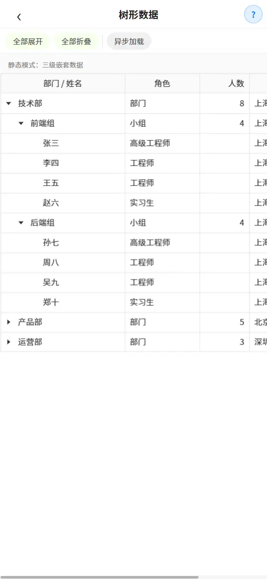 ColumnNode.sortable,受控 / 非受控模式) - 支持树形数据展开 / 折叠(