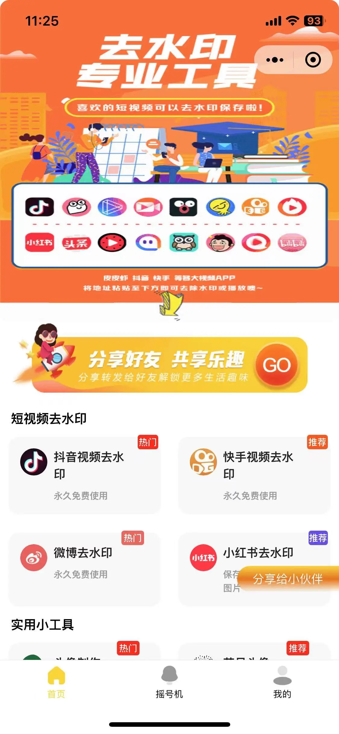 ① 去水印功能 ② 头像挂饰 ③ 图片添加水印 ④vip 电影解析 |
