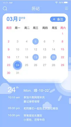 - 增加自定义日历【注:可随意左右滑动】