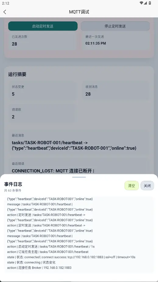 host和port正确。 - 确认手机与 Broker 所在设备在同一网络可达范围内。