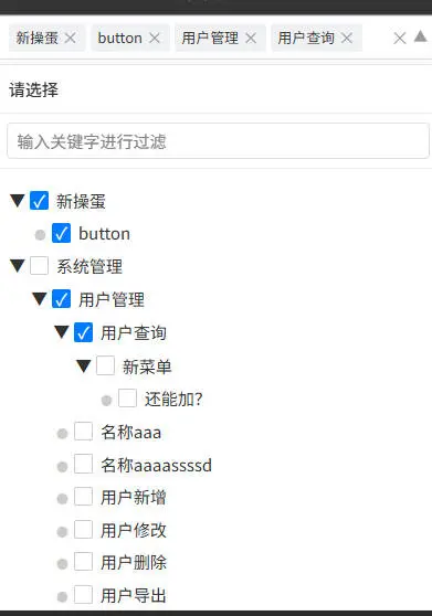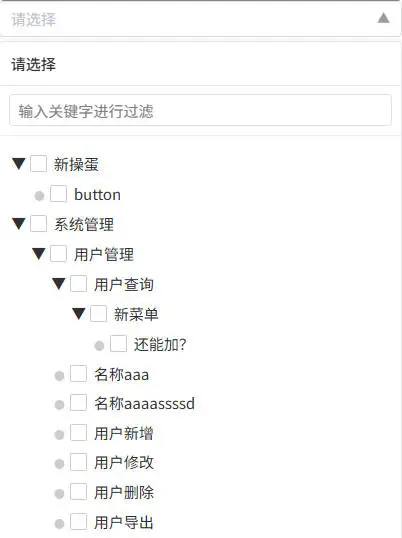 filterMethod 为自定义过滤函数,若不传则使用组件内置的标签匹配过滤(递归匹配 label)。