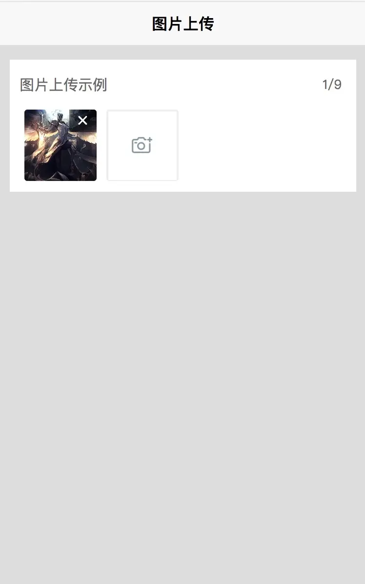 | title | String | 图片上传 | 选填,当传“”空时只显示图片模块 |