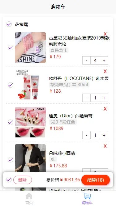 购物车思路借鉴了一下 [@魏晨年]大佬的一些思路