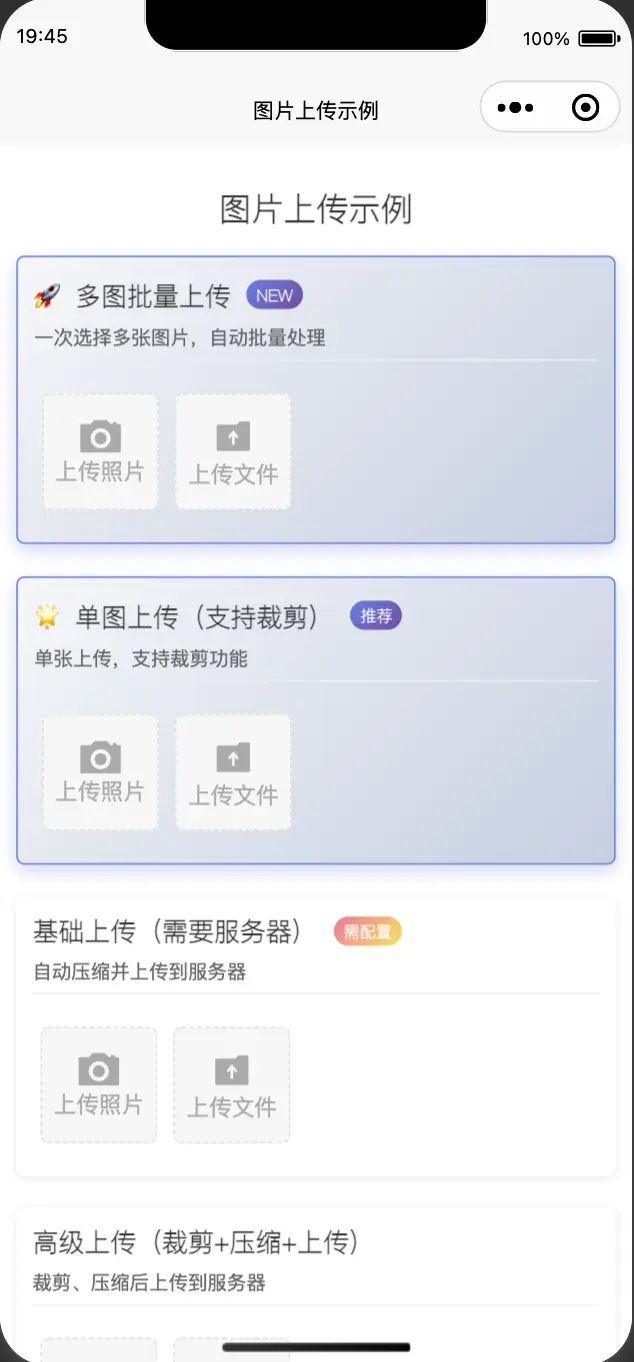 适用于普通图片上传,自动压缩图片减少流量消耗。