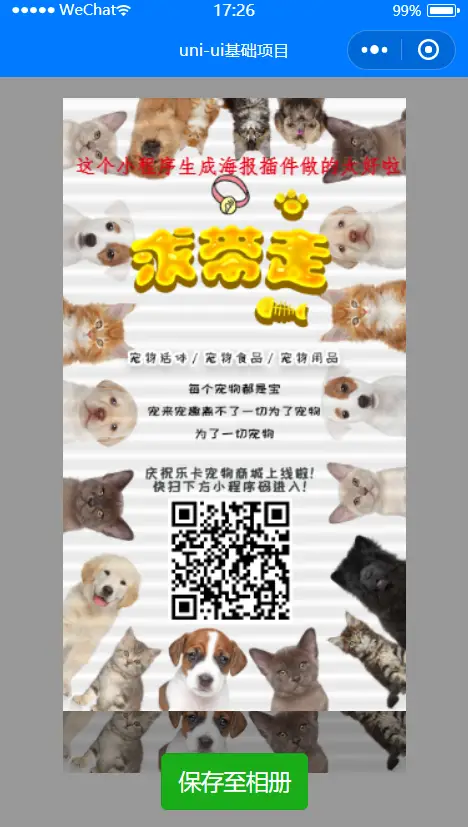 这是一个基于uni极简的生成微信小程序海报的组件,可以快速绘制海报图。使用便捷功能可拆分,支持生成小程序二维码。提供Poster.js文件,在满足海报开发之余,对 canvas Api 进行了封装,只需要配置参数就可以完成绘制。