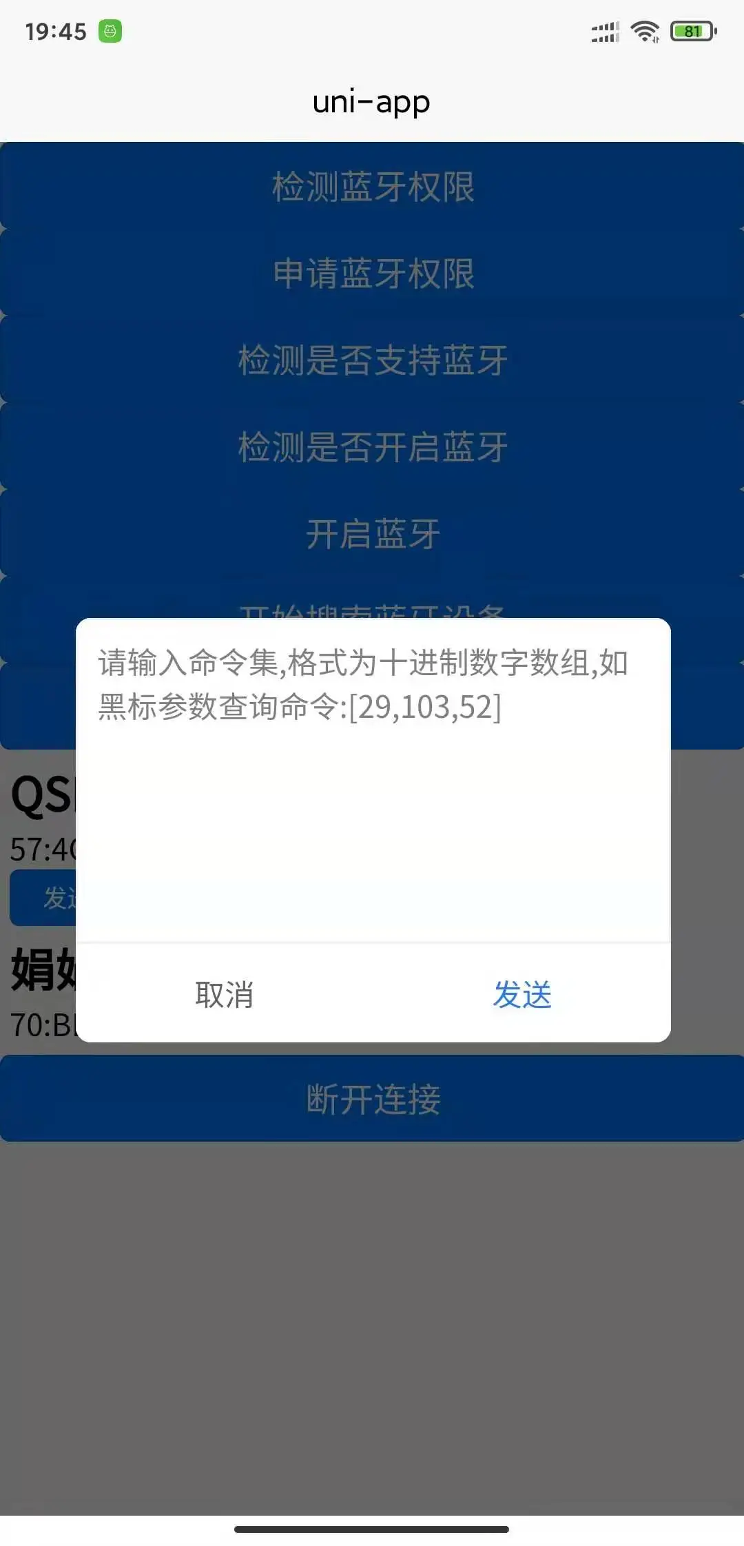 <button type="primary" @click="requestPermission">申请蓝牙权限</button>