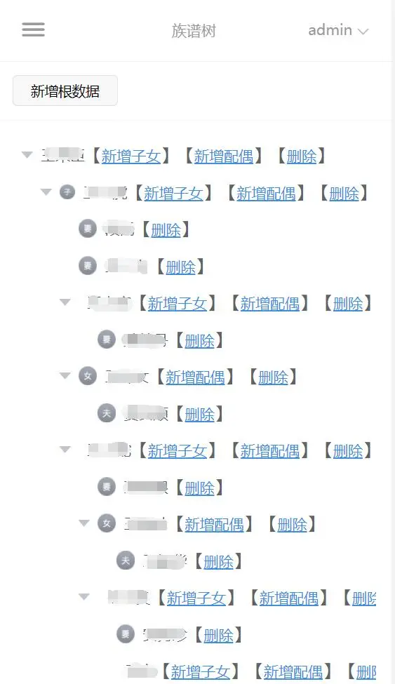 家谱记录女儿的配偶,但不记录的女儿的孩子。也就是只有本族姓氏的人才会一直向下记录。如有需求记录女性族人的子女,可以自行调整tree.vue里的代码。