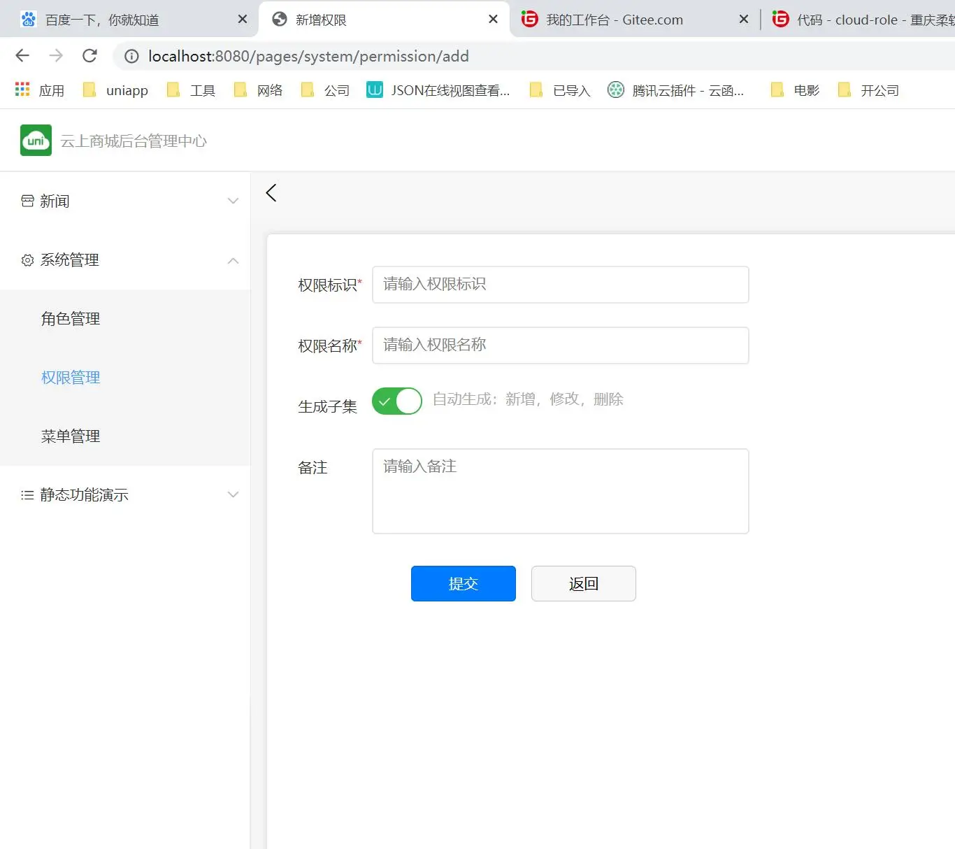 基于 uni-app,uniCloud 的 admin 权限角色管理,在原有基础上,权限增加parent_id,使用ly-tree组件,结合unicloud的getree功能,快速实现树形结构,操作更简单