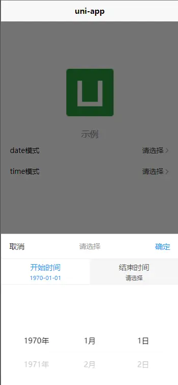startDate: '1970-01-01', //默认显示的开始日期,可空