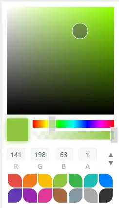- 支持初始化颜色、自适应容器大小方便自定义开发、返回hex、rgba/rgb两种颜色格式。