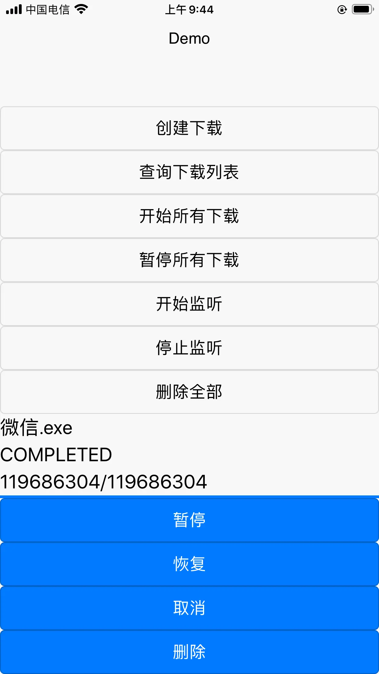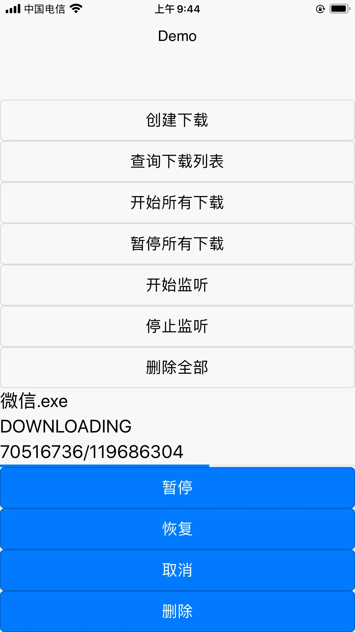 listener() 开始监听下载任务,返回各任务的下载状态及进度,回调周期1秒1条