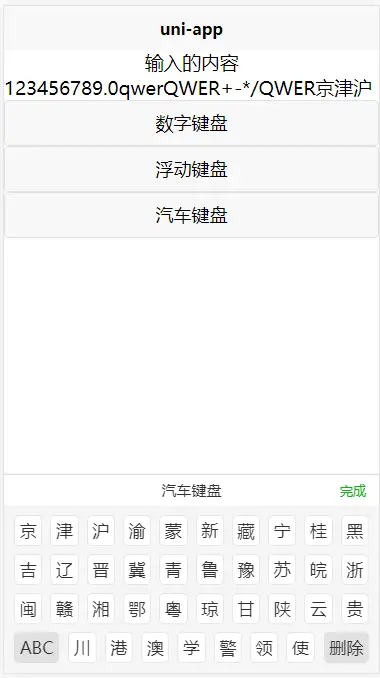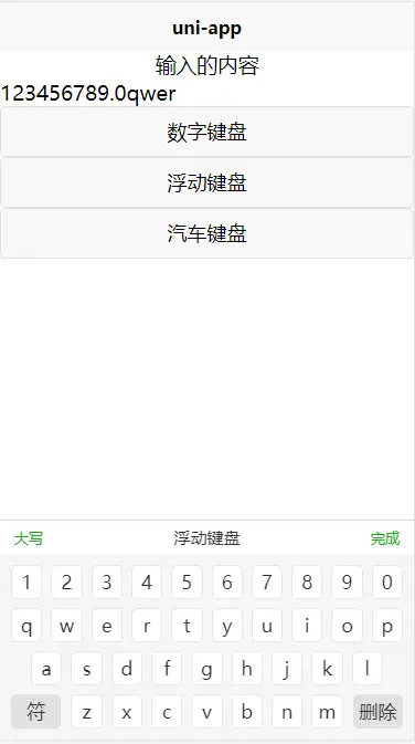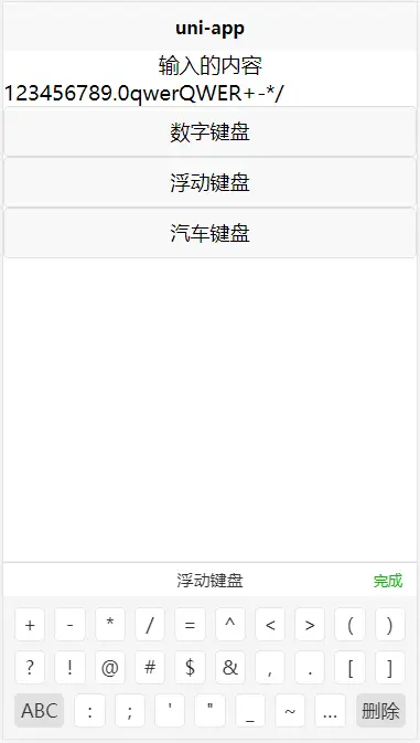 使用与H5、小程序、App端的浮动键盘,键盘包括三种类型,纯数字键盘、汽车键盘、还有全键盘,所有键盘都可以自定义按键类型的禁用转态,值得体验,不懂如何使用的请直接github打包下载运行