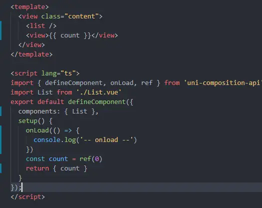 // 如使用TypeScript,你需要使用 defineComponent 使 composition-api 能正确推断 Vue 组件选项中的类型
