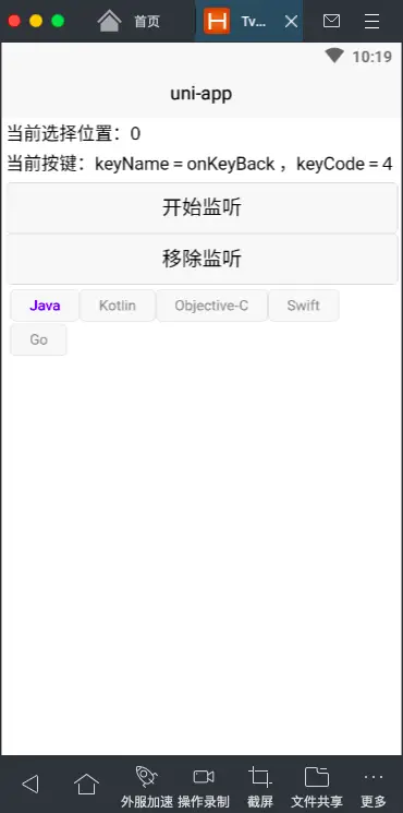 - 设置是否拦截按键事件,默认为true,如果设置为false,则交给UniApp框架处理按键事件