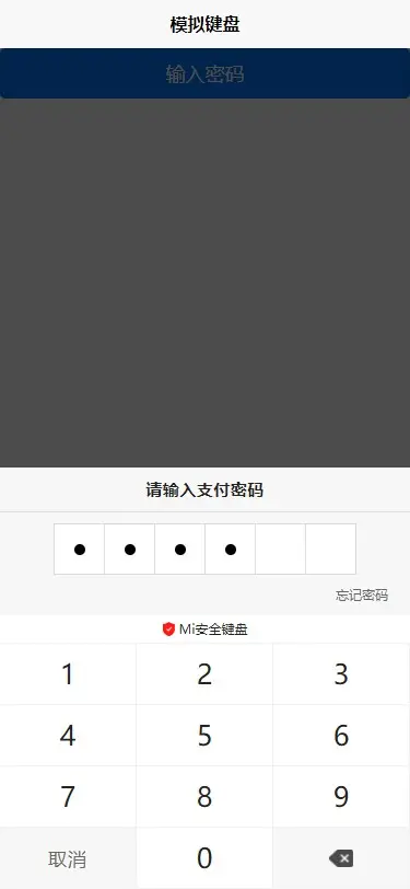 - 主要针对要输入6位数字密码的场景使用,自带模拟键盘。