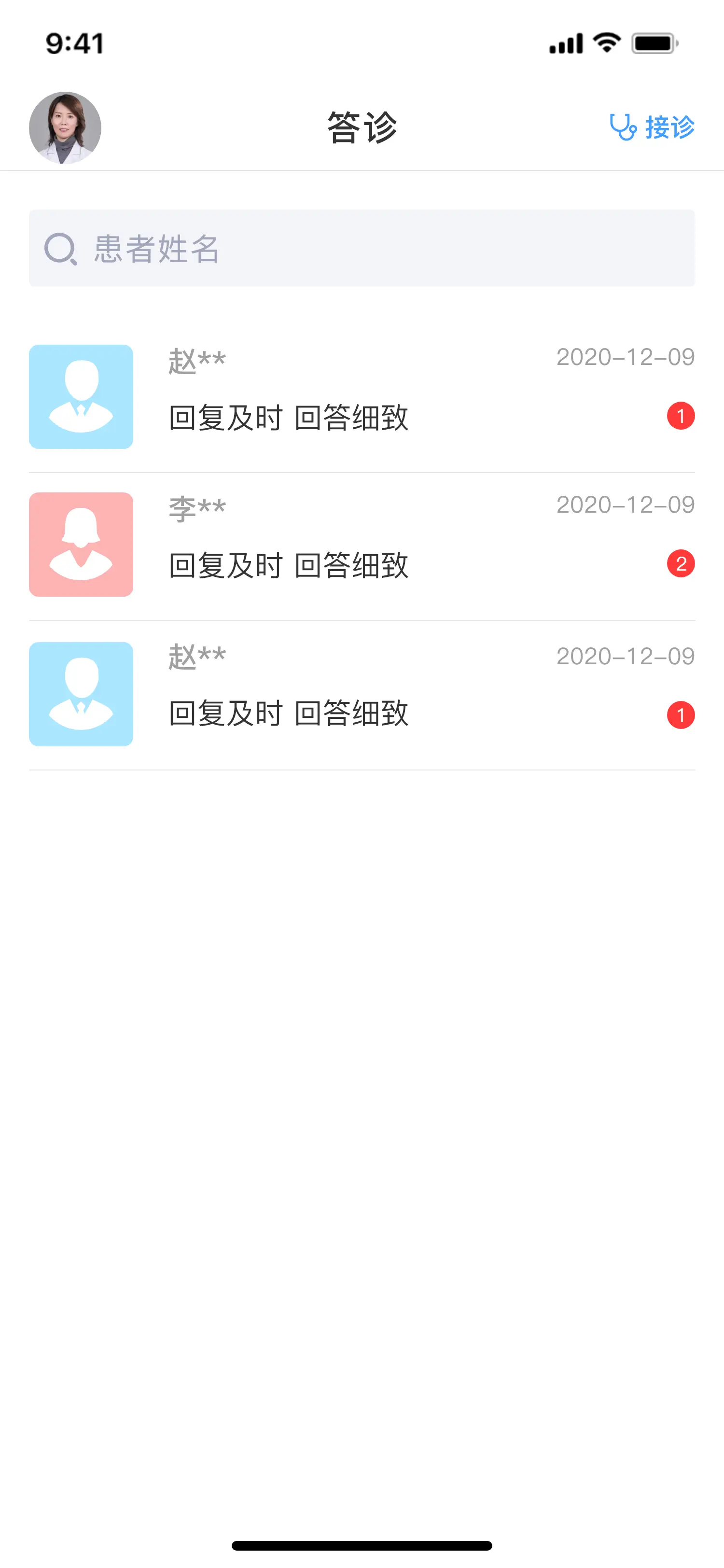 医疗医生答诊答诊-VUE模板 布局、样式、JS分离 答诊 接诊 回复及时回答细致 赵 2020-12-09