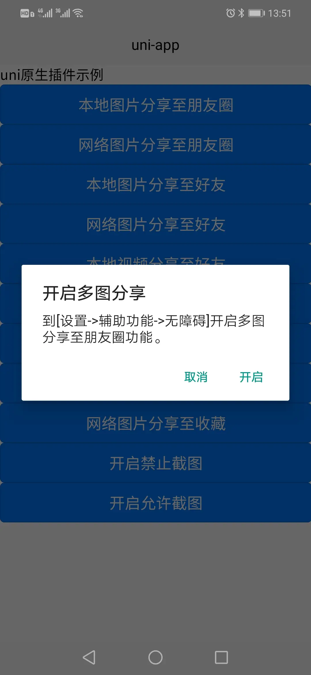 *注意:购买前可以先下载示例工程试试**** *使用多图分享**功能需要开启手机无障碍