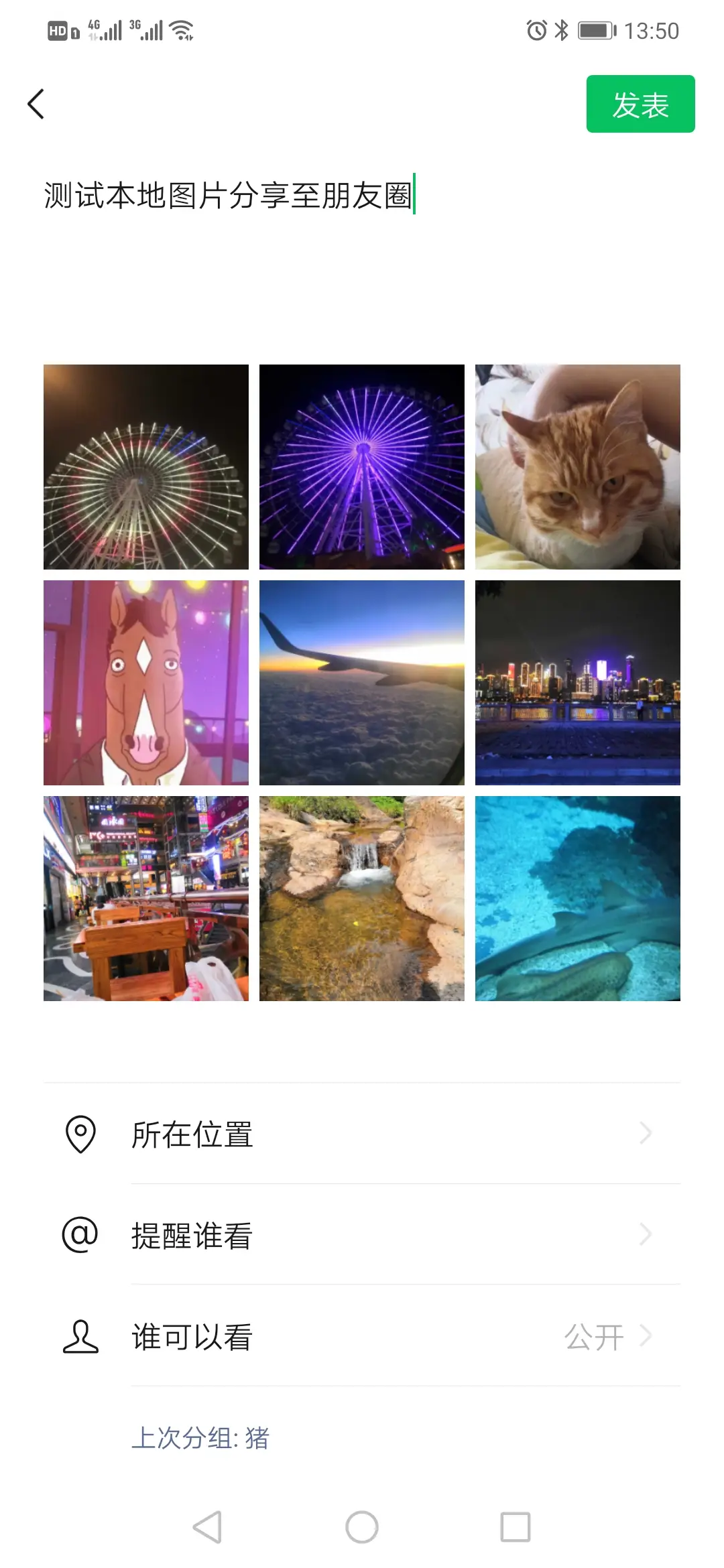 更新了新版微信图片分享朋友圈少一张图片的bug;增加了分享朋友圈后自动点击发布并返回app