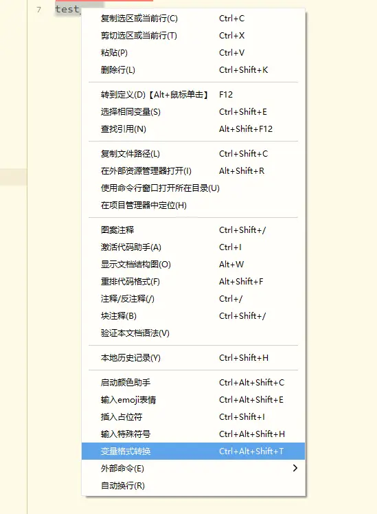 - 方式1:编辑窗口激活状态下,鼠标右键菜单选择:【变量格式转换】来启动