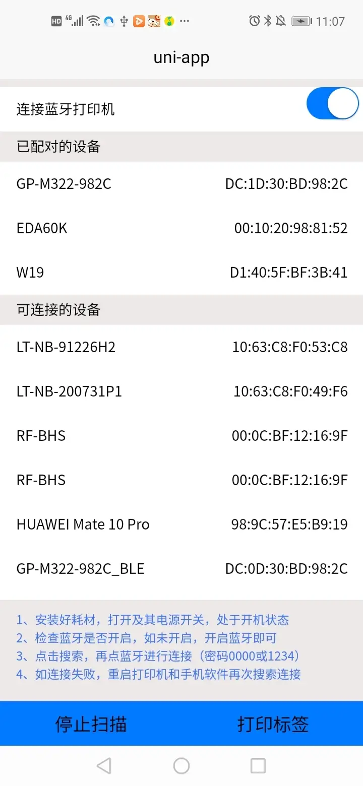message: "蓝牙" + ret.devicename + "---" + ret.macaddress + "---" + ret.state,